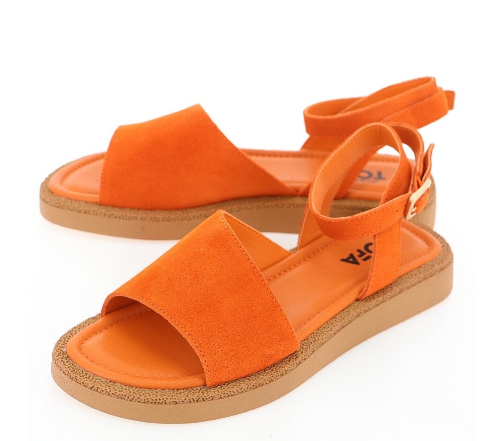 Босоножки женские из натуральной кожи оранжевого цвета , стелька из микрофибры приятна для стоп в жару. Отличный вариант на лето!