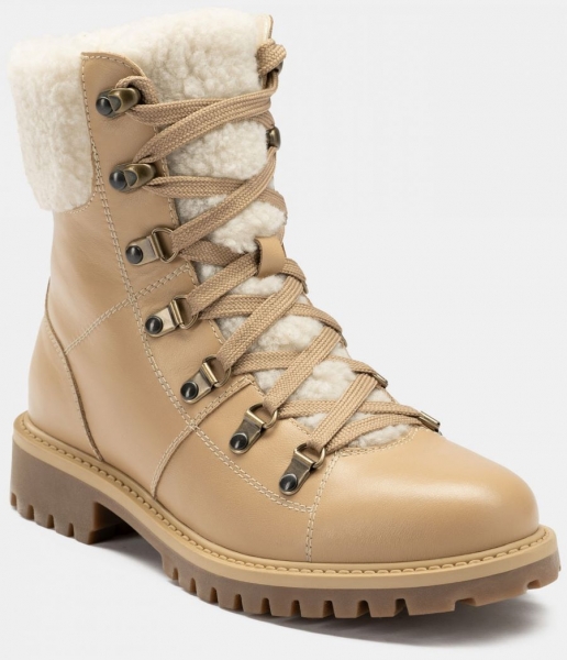 Бежевые женские ботинки фасона ASPEN порадуют модниц качественными материалами исполнения и непревзойденным комфортом. Модель выполнена из натуральной кожи и меха, имеет невысокий каблук и нескользящий протектор. Отличный вариант на каждый день!
