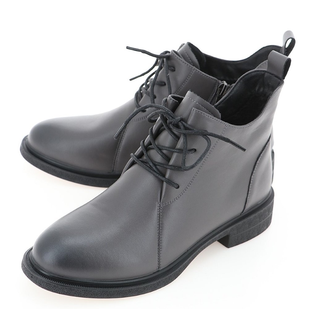 Демисезонные женские ботинки серого цвета на низком каблуке