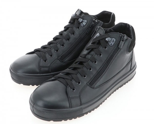 Мужские высокие кеды из 100% натуральной кожи. Кожа отличается высоким качеством отделки лицевой поверхности. Такая обувь комфортна для длительного ношения, при этом долго сохраняет стильный внешний вид при правильном уходе. Кеды обладают удобной колодкой, разработанной с применением инновационных технологий, обеспечивающих отличную посадку и комфорт при ходьбе. Подошва легкая, гибкая и прочная, с хорошим сцеплением с поверхностью, что делает модель практичной для повседневного использования. Эти кеды отлично дополнят повседневный гардероб.