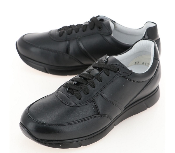 Женские кроссовки черного цвета. Верх модели выполнен из прочной натуральной кожи. Анатомическая колодка обеспечивает комфорт и удобство. Мягкая подошва из полиуретана хорошо амортизирует и устойчива к износу. Оригинальный протектор сохраняет отличное сцепление на любой поверхности.