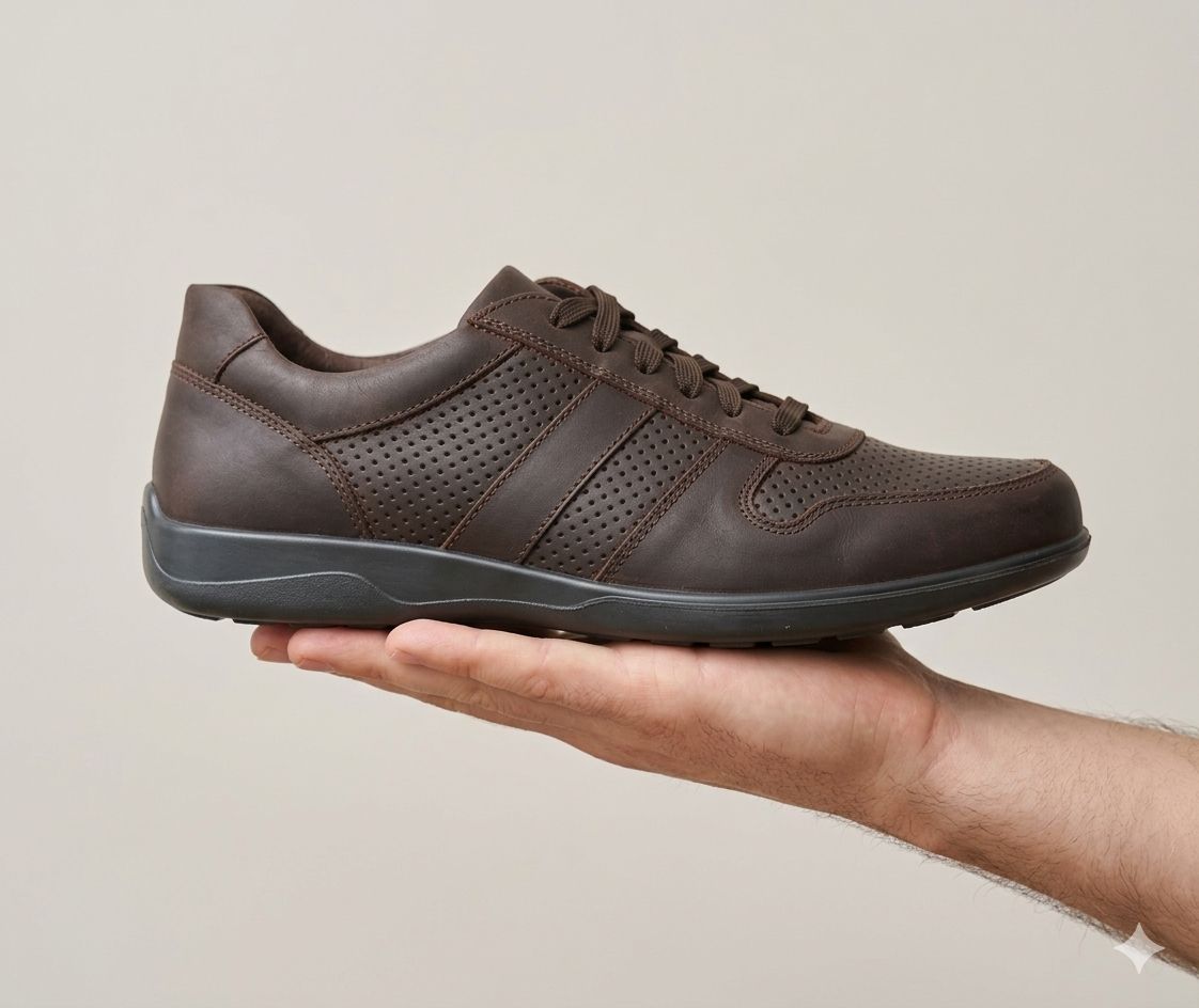 Демисезонные мужские кроссовки РЭЙ универсального коричневого цвета на широкую ногу. . Модель выполнена из натуральной кожи. Комбинированная подкладка и двухслойная стелька из текстиля на антибактериальной основе сохраняют свежесть внутри обуви в течение дня, что гарантирует комфорт. Комбинированная прочная подошва отличается своей износостойкостью и гибкостью.