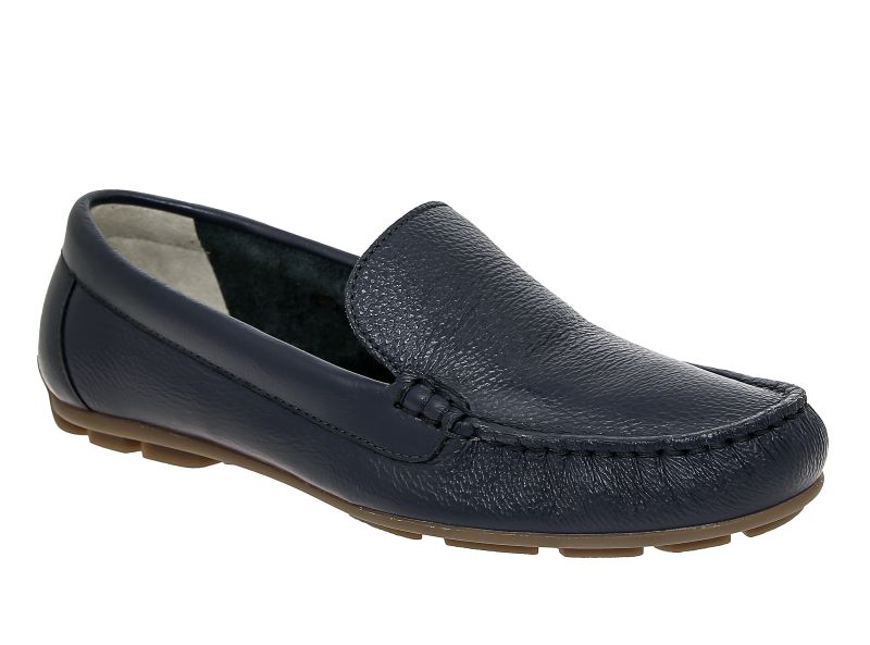 Мокасины женские KENYA темно-синего цвета. Модель подходит на широкую ногу. Верх и стелька из натуральной кожи позволяют ногам дышать и поддерживают правильный микроклимат в обуви.