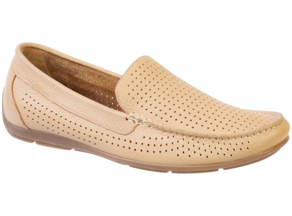 Летние мокасины SHARK из новой мужской коллекции в светлом цвете выглядят очень стильно и аккуратно. Модель выполнена из натуральной кожи, имеет сверхлёгкую конструкцию и мягкую удобную подошву. Мокасины будут хорошо сочетаться с вашим летним гардеробом. Модель отличается увеличенной полнотой, учитывайте это при выборе обуви.