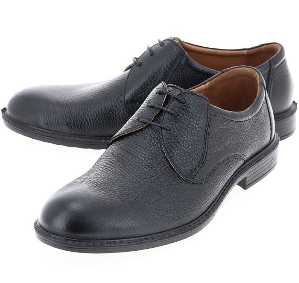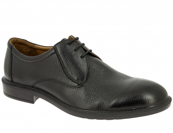 Черные мужские туфли ROGER-3 с легкостью впишутся в ваш деловой гардероб. Материал верха - мягкая крупноячеистой кожа. Литьевой способ крепления подошвы обеспечивает повышенную прочность, а удобная шнуровка и легкая конструкция добавят комфорта. Модель отличается увеличенной полнотой, учитывайте это при выборе обуви. Туфли легко сочетаются с классическим костюмом и джинсами.