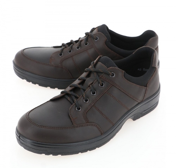 Мужские полуботинки коричневого цвета на широкую ногу. Модель изготовлена из сочетания натуральной кожи и технологичного текстиля. Фирменная стелька Ralfina из материала Poliyou быстро впитывает влагу и хорошо амортизирует, что создает дополнительный комфорт ногам. Надежная подошва из полиуретана амортизирует и обеспечивает достойное сцепление с любой поверхностью.