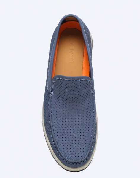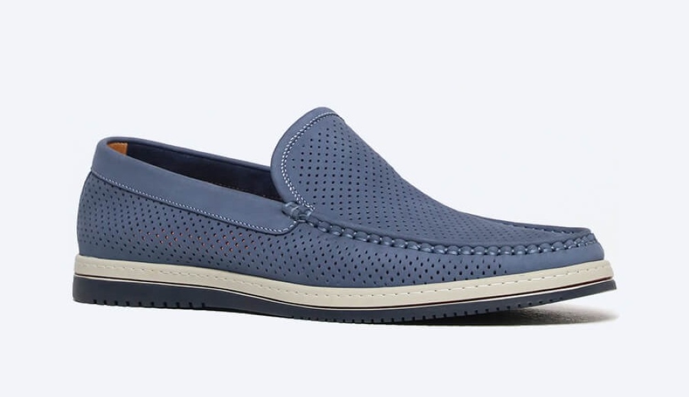 Мужские лоферы синего цвета на светлой подошве. Верх и стелька из натуральной кожи позволяют стопам дышать